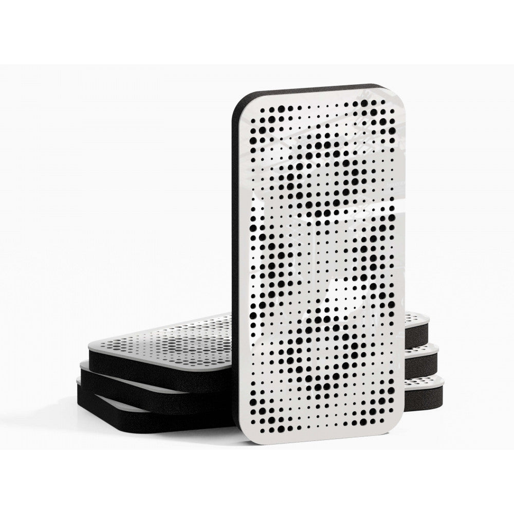 - Akoestisch polyurethaanschuim heeft zogenaamde poriën. Deze poriën worden gevormd door het materiaal te laten opschuimen tot de gewenste dichtheid en kunnen verschillende groottes hebben. Dit is een normaal verschijnsel bij akoestisch schuim. Het aantal poriën kan tot 1% van het totale oppervlak zijn.