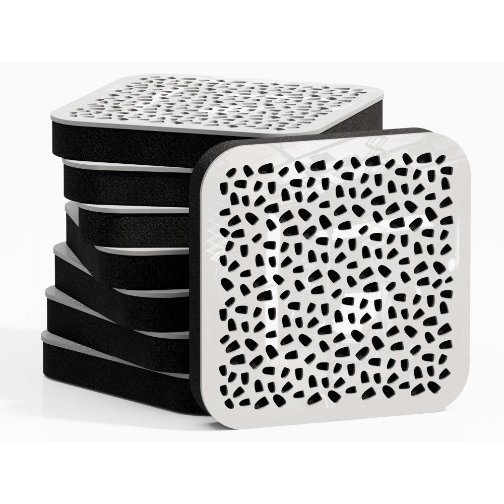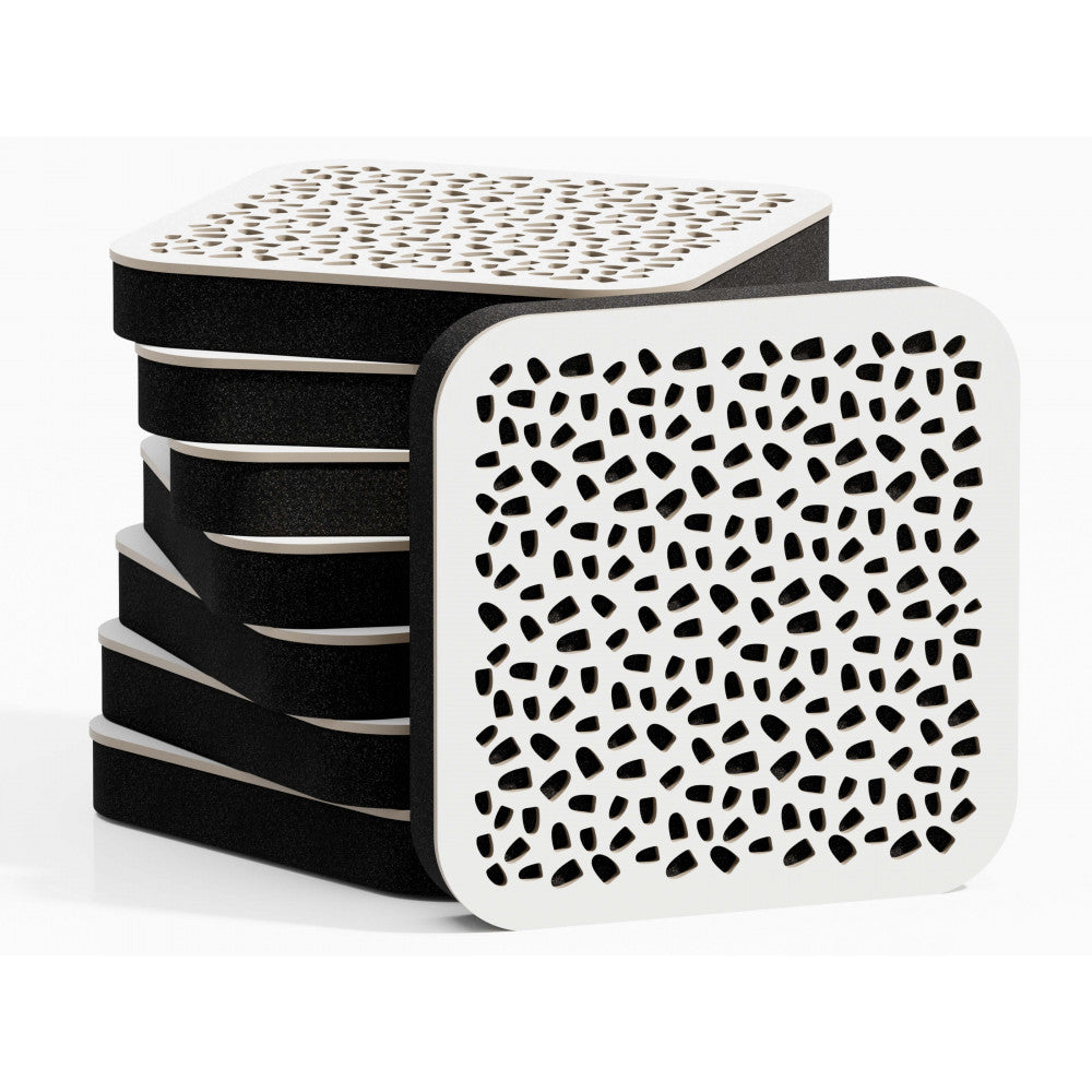 Hierdoor bestrijdt het akoestische paneel van de “Stones” met succes het echo-effect door het geluid van middelhoge en hoge frequenties te verzwakken en een kwalitatief en zuiver geluid in de ruimte te bieden.