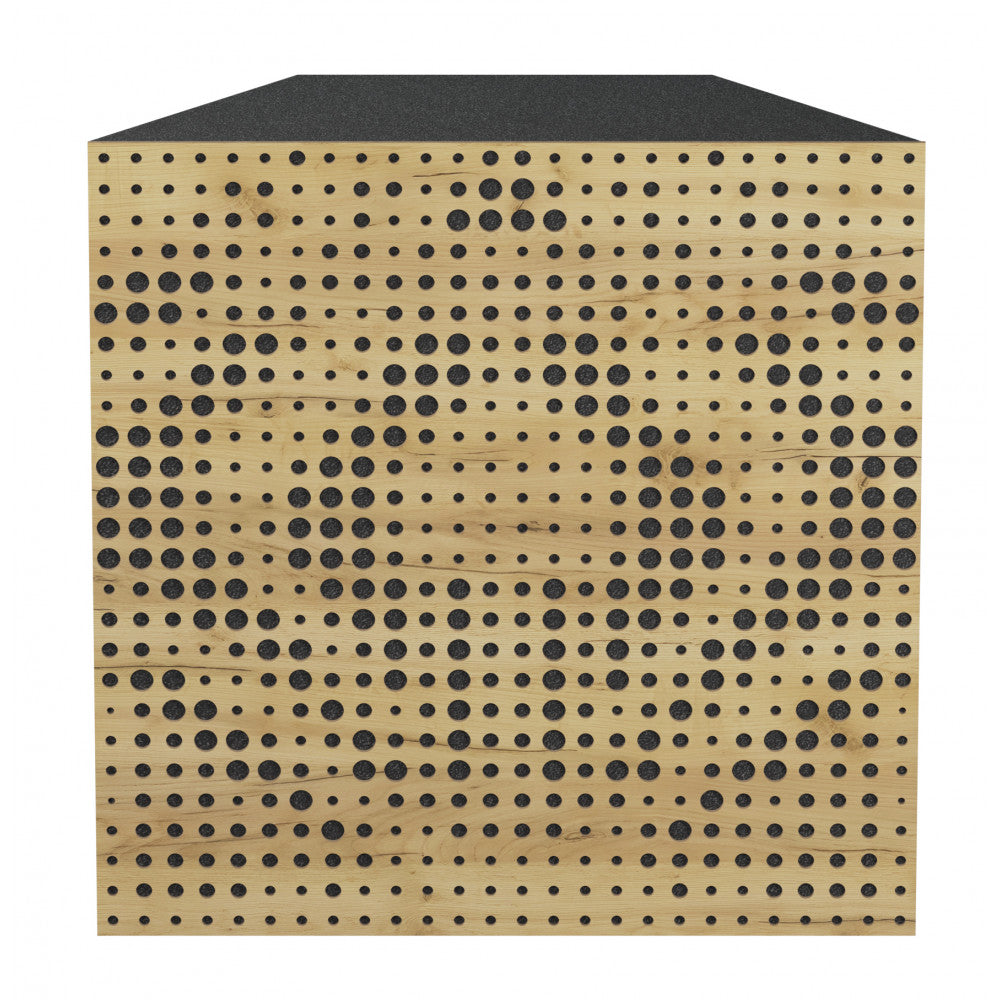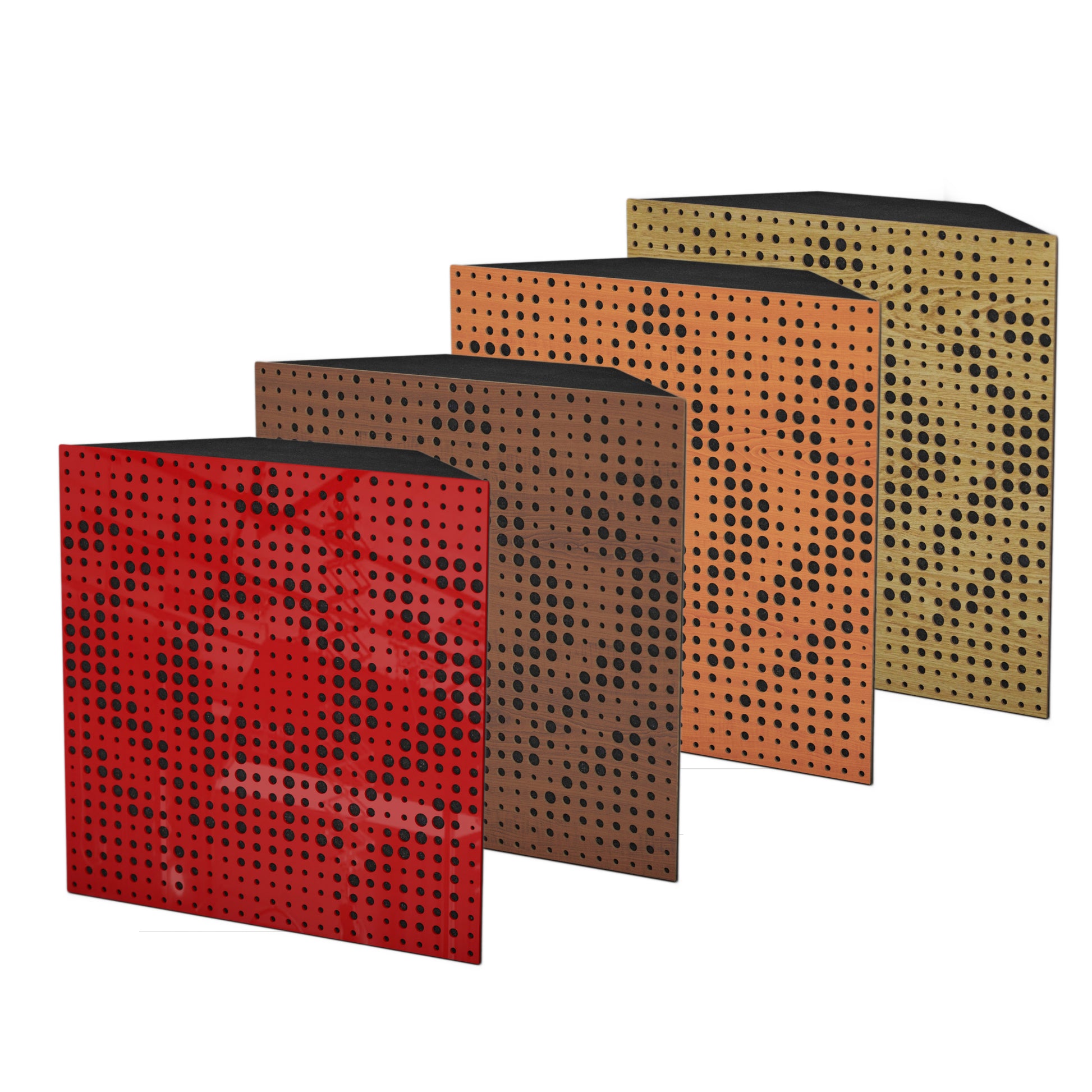De "Wave" Trap hoek akoestische panelen (bass traps) combineren de functie van absorptie in het lage frequentiegebied en de reflectie van geluid met behulp van akoestisch schuim en een dispersieplaat. Deze traps werken perfect in bijna elke ruimte waar sprake is van een probleem met laagfrequente galm en staande golven. Een dikke akoestische basis gemaakt van 100 en 150 mm akoestisch schuim zorgt voor de nodige efficiëntie in het laagfrequente bereik.