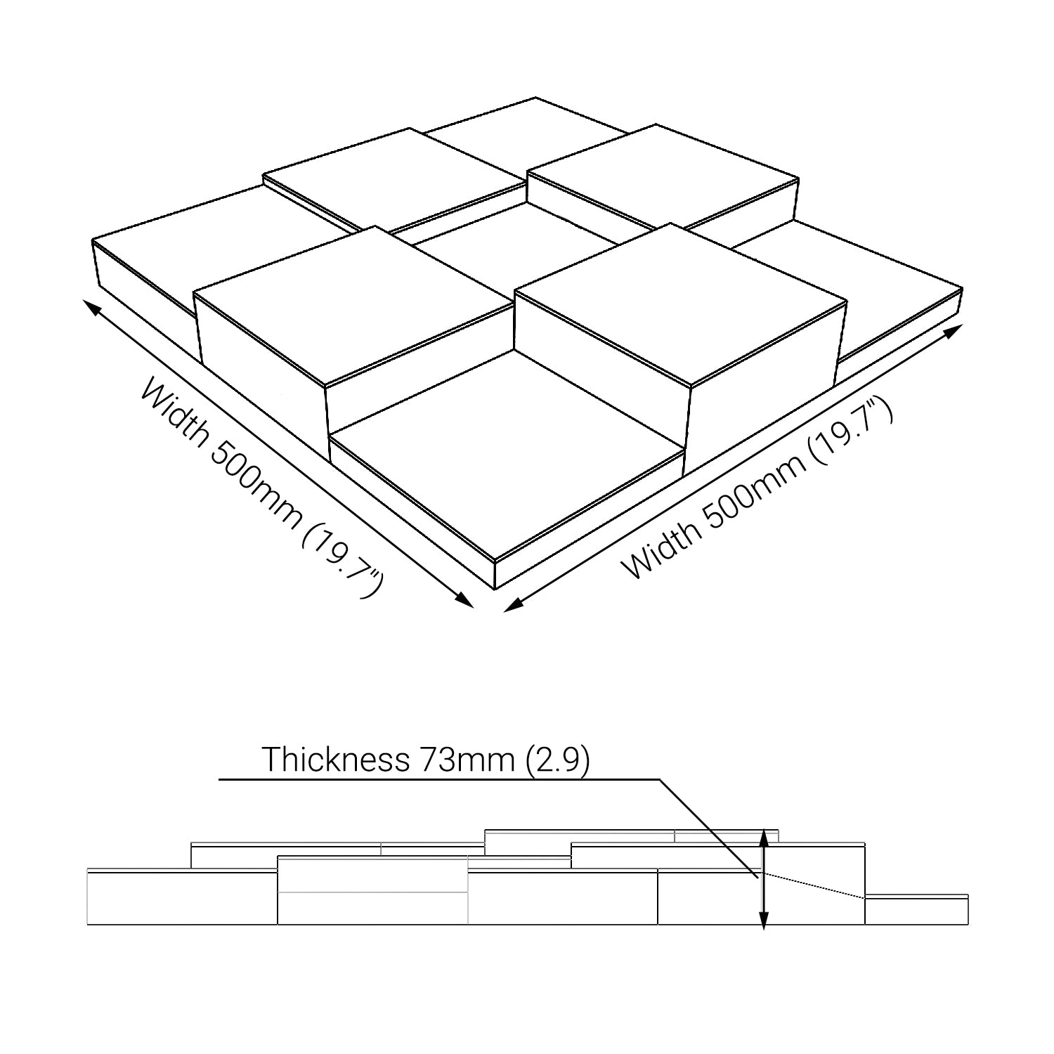 - Afmetingen: 500x500mm / (20x20inch)